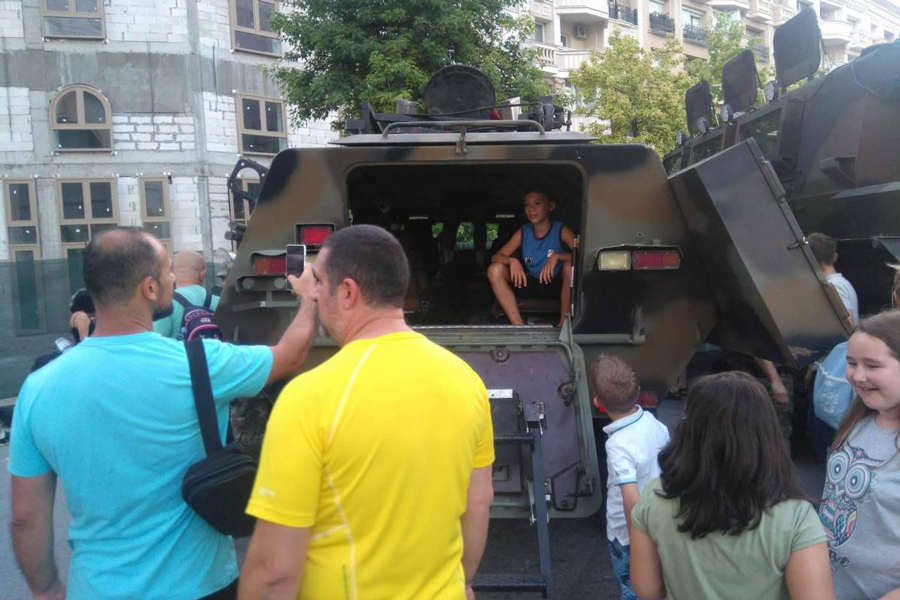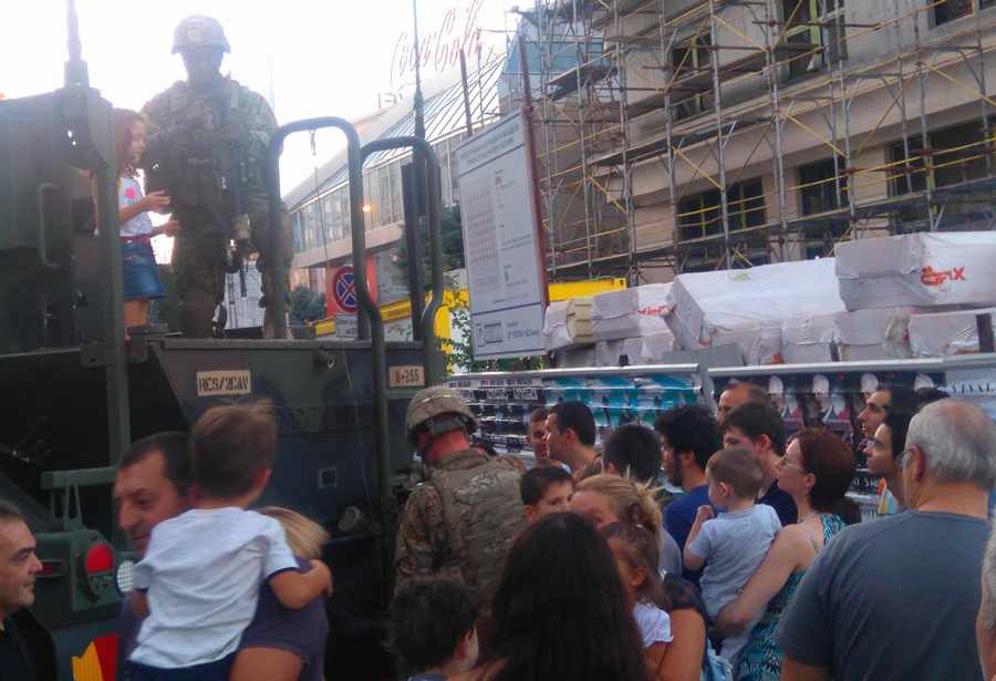 Инаку, воениот конвој на Армијата на САД, кој беше најавен пред повеќе од еден месец, во сабота на 29 јули влезе на територијата на Република Македонија. Имено, станува збор за контингент на вооружените сили на САД, кои во соработка со армијата на Македонија ќе учествуваат во заедничка воена вежба во Криволак. Вежбата е именувана „Dragoon Guardian 17“, а ќе трае до 10 август. На неа ќе учествуваат 300 американски војници и 95 припадници на АРМ. Со цел, граѓаните одблиску да се запознаат, вчера од триумфалната капија до плоштадот Македонија во Скопје, беше изложено оружјето и воените реквизити на армијата на САД. Од фотографиите и видеата кои кружат во јавноста, може да се види, како на оклопните воени возила родителите ги фотографираат своите мали деца. На настанот имаше голем број на малолетни лица, кои со голема заинтересираност го разгледуваа оружјето, наменето за војни.