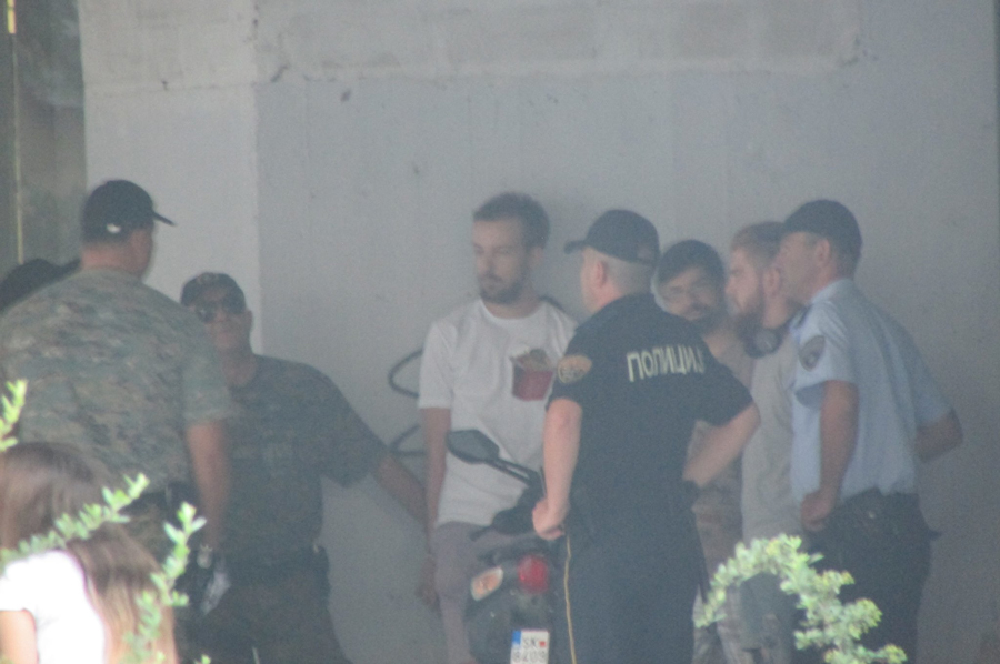 „Бевме неколку луѓе од Левица, со транспарентот „Против војните за профит“. Имаше членови на КПМ со знаме на СФРЈ. Откако не’ спречија, кружевме и дојдовме овде, инаку, цело време бевме следени од полиција и униформирани и во цивилка. Тука кога дојдовме, го извадивме транспарентот, за да се гледа и не поминаа ни пет минути, се качија полицајци и не ’ приведоа нас четворица. Ме приведоа мене, уште еден член на Левица, еден член на Левичарското движење „Солидарност“ и еден граѓански новинар од „Цивил“. Кога не’ симнаа долу, мене ми ѕвонеше телефонот и не ми дозволија да се јавам, при што ми рекоа дека, сум лишен од слобода. Иако, сега велат дека, тоа било само легитимирање“, истакна Муратовски.
